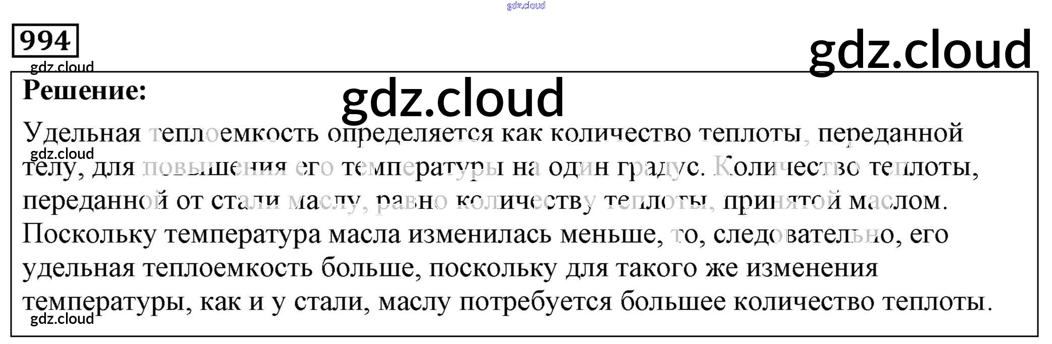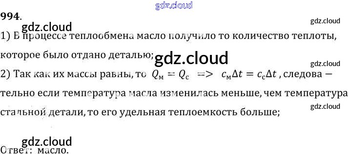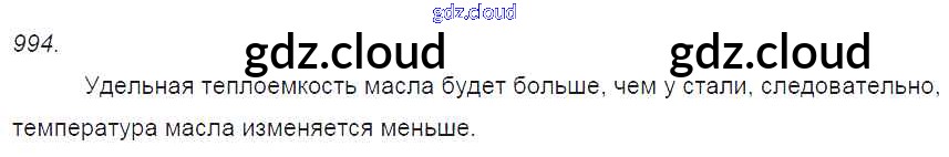 Ответ на задание 994 Сборник задач Физика за 7, 8, 9 (седьмой, восьмой, девятый) класс Лукашик, Иванова 2011