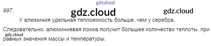 Ответ на задание 997 Сборник задач Физика за 7, 8, 9 (седьмой, восьмой, девятый) класс Лукашик, Иванова 2011