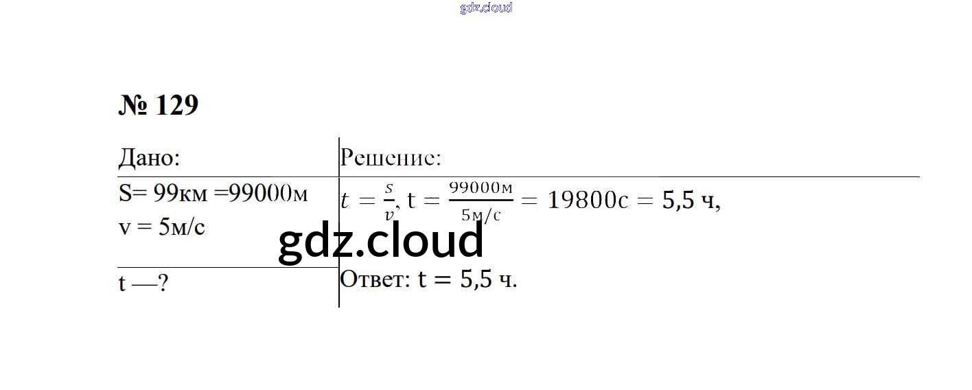 Ответ на задание 129 Сборник задач Физика за 7, 8, 9 (седьмой, восьмой, девятый) класс Перышкин, Лонцова УМК 2016