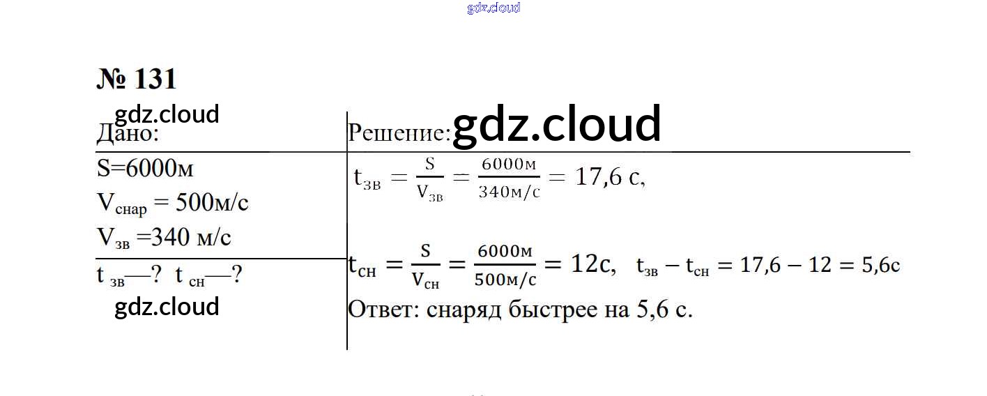 Ответ на задание 131 Сборник задач Физика за 7, 8, 9 (седьмой, восьмой, девятый) класс Перышкин, Лонцова УМК 2016