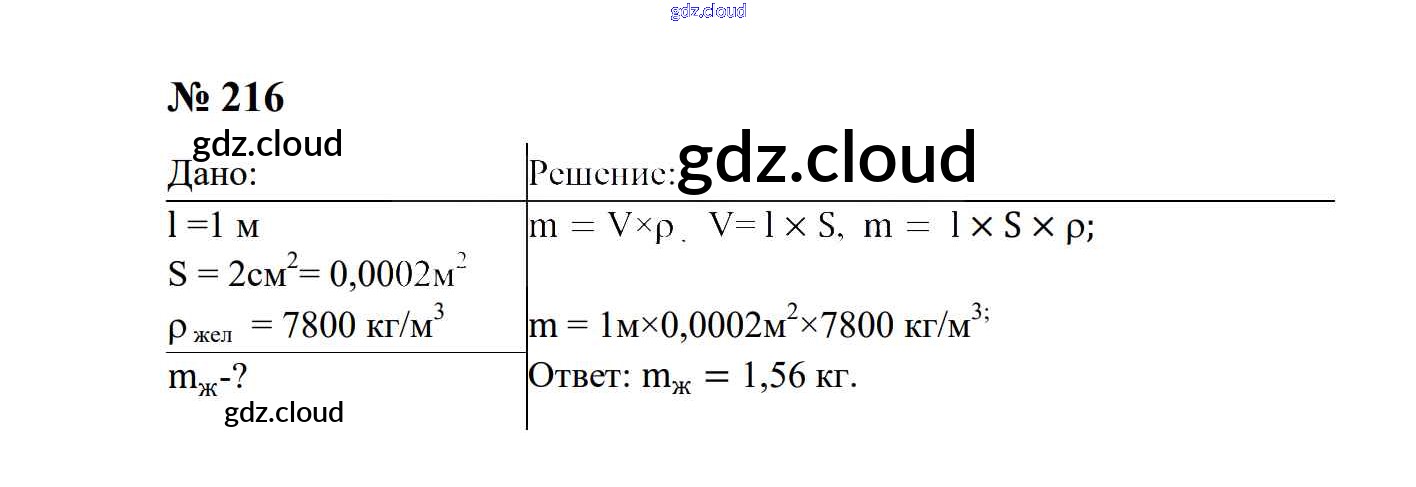 Ответ на задание 216 Сборник задач Физика за 7, 8, 9 (седьмой, восьмой, девятый) класс Перышкин, Лонцова УМК 2016