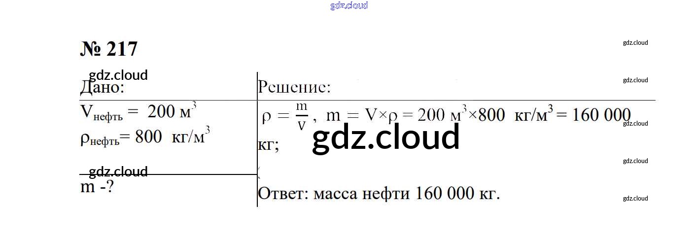 Ответ на задание 217 Сборник задач Физика за 7, 8, 9 (седьмой, восьмой, девятый) класс Перышкин, Лонцова УМК 2016