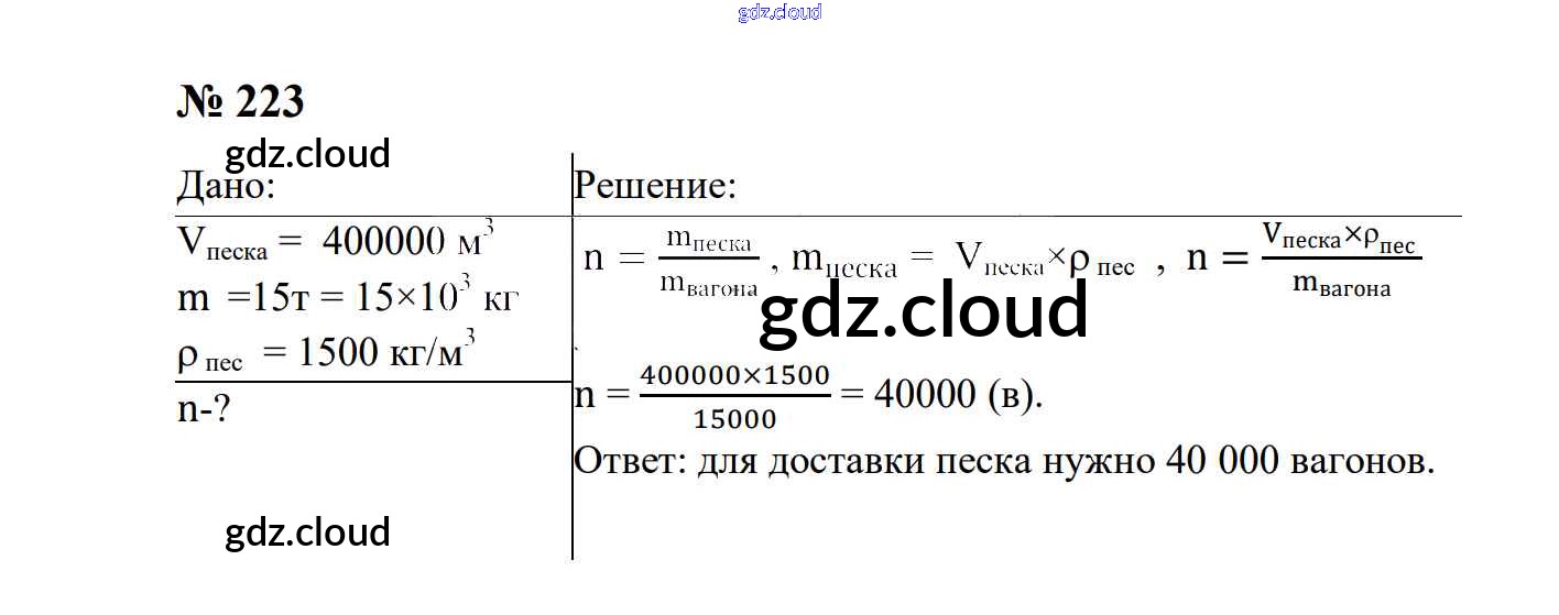 Ответ на задание 223 Сборник задач Физика за 7, 8, 9 (седьмой, восьмой, девятый) класс Перышкин, Лонцова УМК 2016
