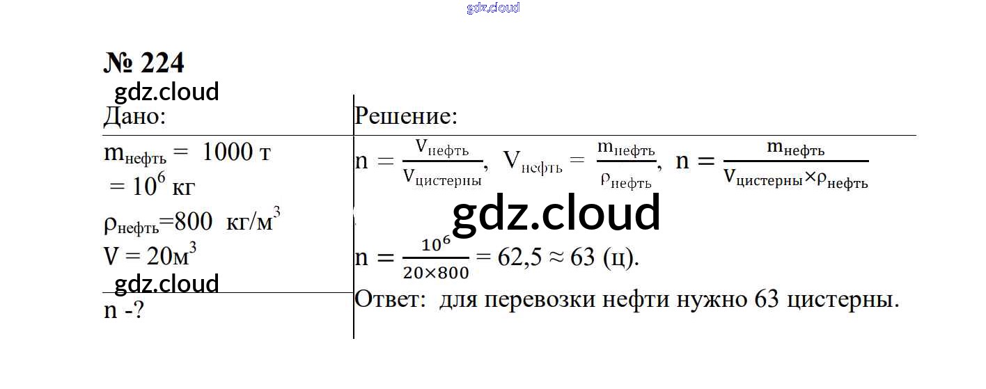 Ответ на задание 224 Сборник задач Физика за 7, 8, 9 (седьмой, восьмой, девятый) класс Перышкин, Лонцова УМК 2016