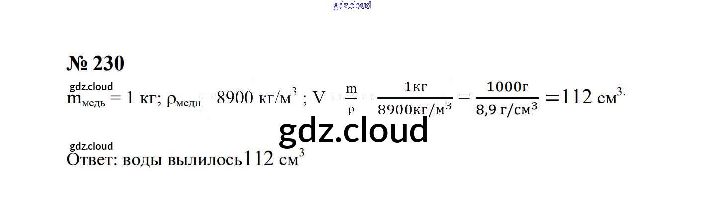 Ответ на задание 230 Сборник задач Физика за 7, 8, 9 (седьмой, восьмой, девятый) класс Перышкин, Лонцова УМК 2016