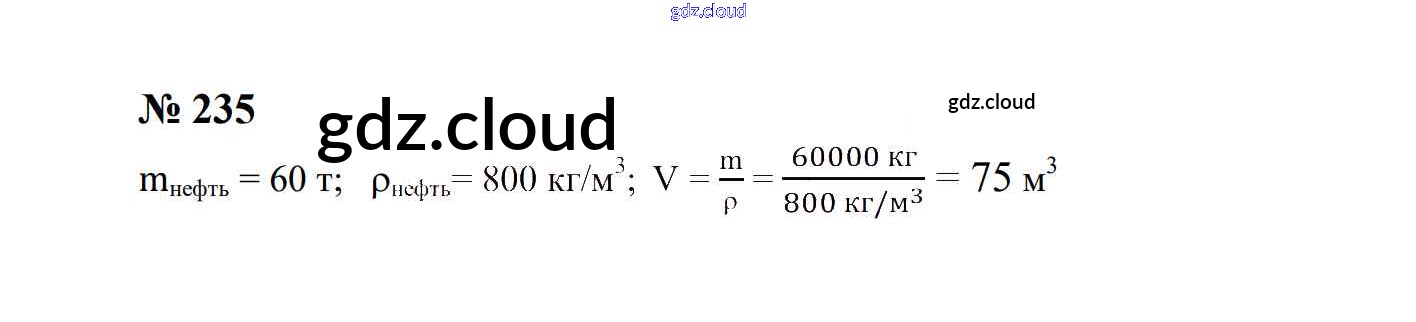 Ответ на задание 235 Сборник задач Физика за 7, 8, 9 (седьмой, восьмой, девятый) класс Перышкин, Лонцова УМК 2016