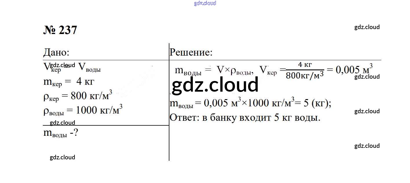 Ответ на задание 237 Сборник задач Физика за 7, 8, 9 (седьмой, восьмой, девятый) класс Перышкин, Лонцова УМК 2016