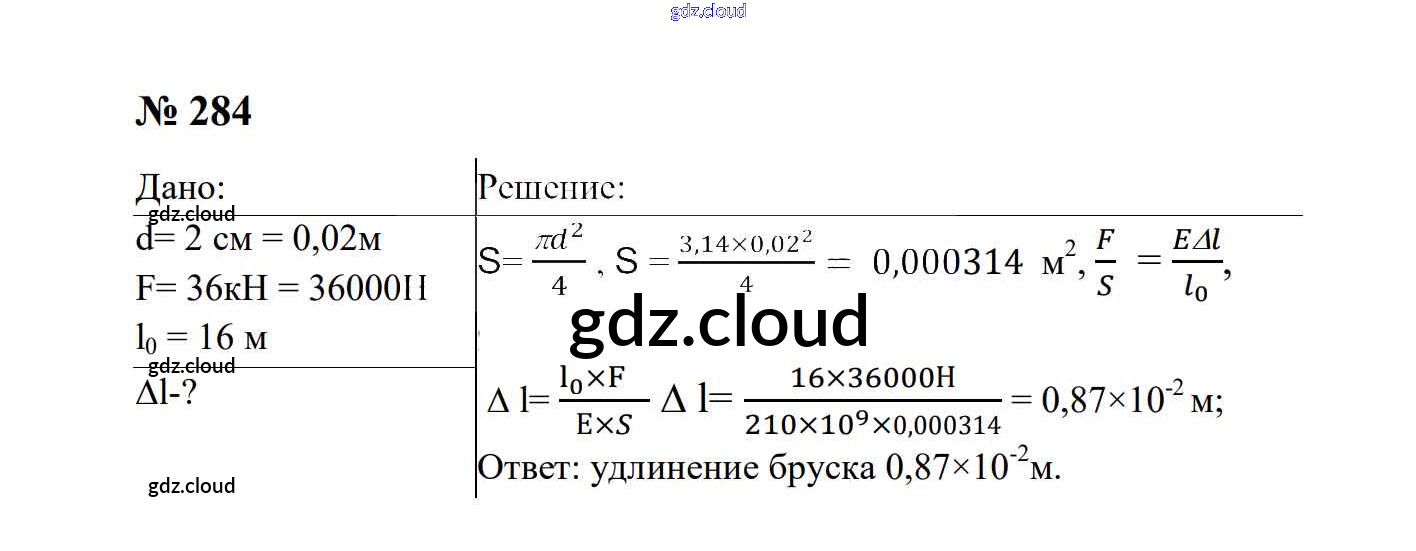 Ответ на задание 284 Сборник задач Физика за 7, 8, 9 (седьмой, восьмой, девятый) класс Перышкин, Лонцова УМК 2016