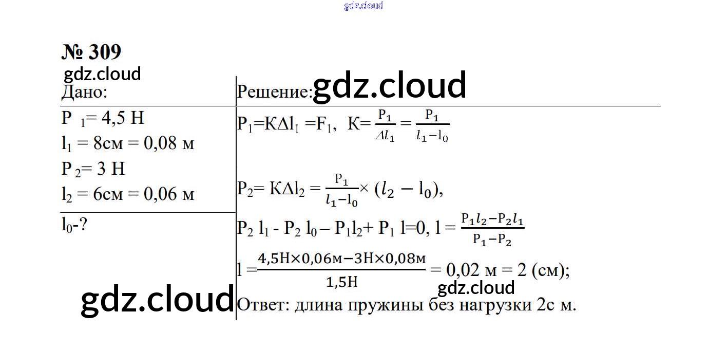 Ответ на задание 309 Сборник задач Физика за 7, 8, 9 (седьмой, восьмой, девятый) класс Перышкин, Лонцова УМК 2016