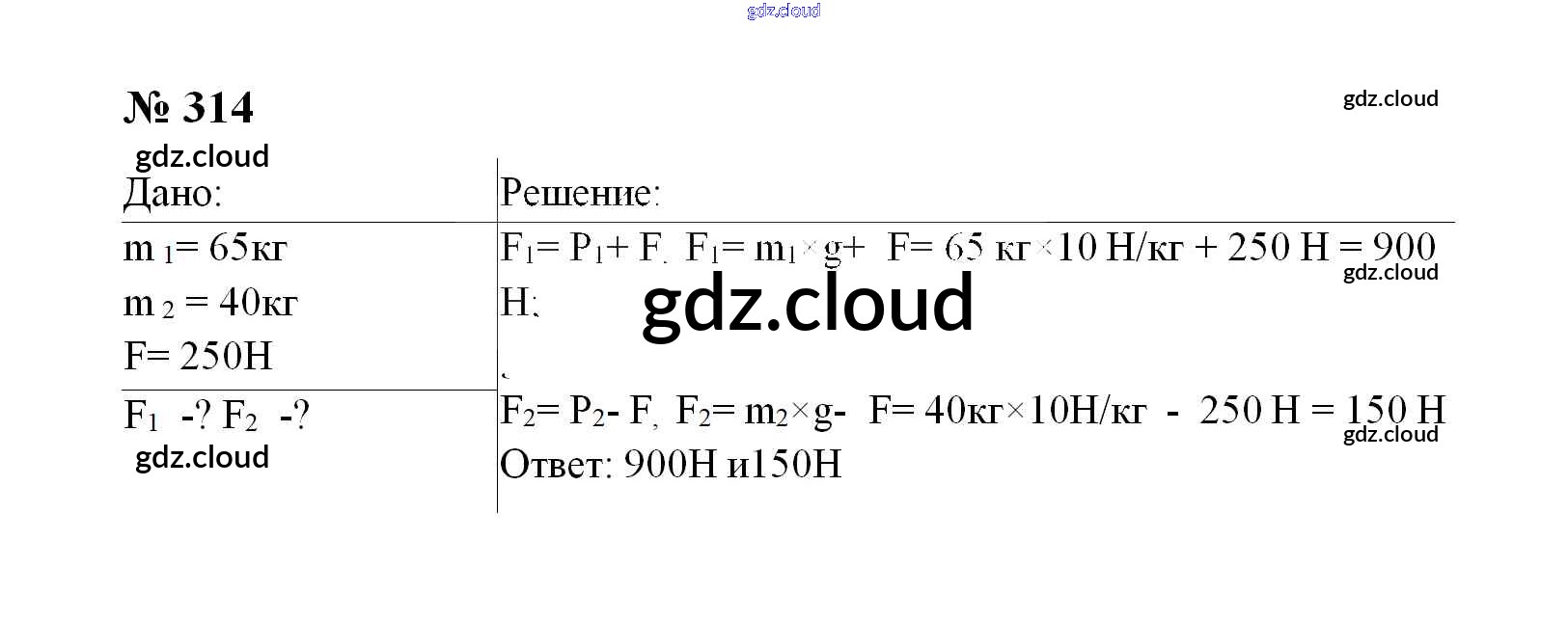 7 класс / взаимодействие тел / 314