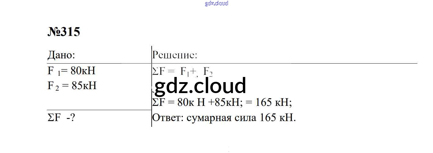 Ответ на задание 315 Сборник задач Физика за 7, 8, 9 (седьмой, восьмой, девятый) класс Перышкин, Лонцова УМК 2016