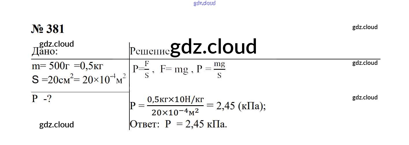 Ответ на задание 381 Сборник задач Физика за 7, 8, 9 (седьмой, восьмой, девятый) класс Перышкин, Лонцова УМК 2016
