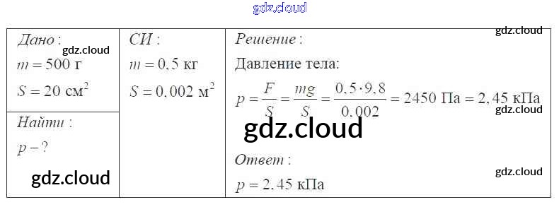 Давление твердых тел, жидкостей и газов Ответы к 7 классу по Физике 7, 8, 9 класс Сборник задач Перышкин УМК Экзамен