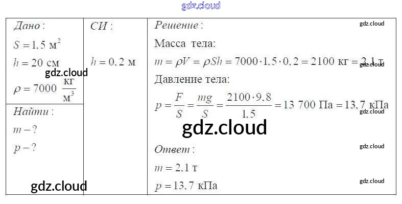 Давление твердых тел, жидкостей и газов Ответы к 7 классу по Физике 7, 8, 9 класс Сборник задач Перышкин УМК Экзамен