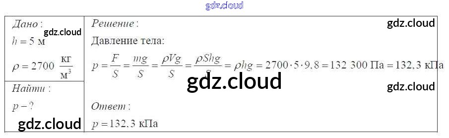 Давление твердых тел, жидкостей и газов Ответы к 7 классу по Физике 7, 8, 9 класс Сборник задач Перышкин УМК Экзамен