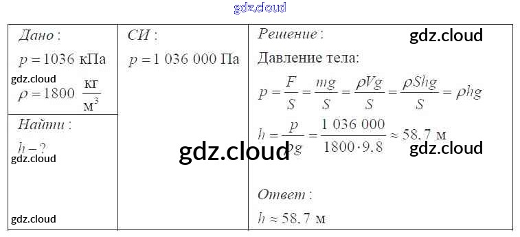 Давление твердых тел, жидкостей и газов Ответы к 7 классу по Физике 7, 8, 9 класс Сборник задач Перышкин УМК Экзамен
