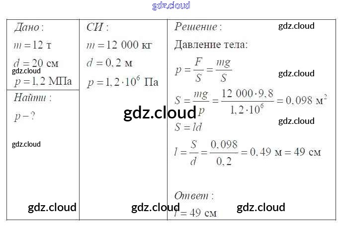 Давление твердых тел, жидкостей и газов Ответы к 7 классу по Физике 7, 8, 9 класс Сборник задач Перышкин УМК Экзамен