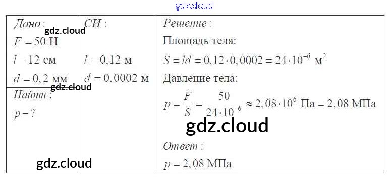 Давление твердых тел, жидкостей и газов Ответы к 7 классу по Физике 7, 8, 9 класс Сборник задач Перышкин УМК Экзамен