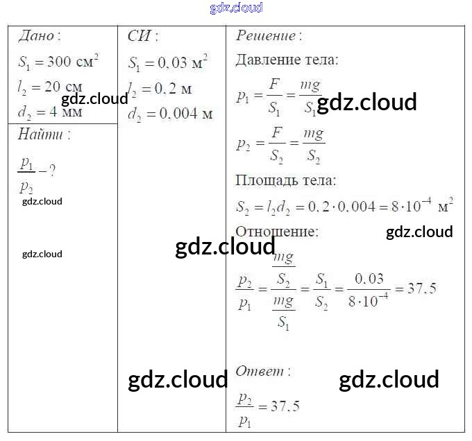 Давление твердых тел, жидкостей и газов Ответы к 7 классу по Физике 7, 8, 9 класс Сборник задач Перышкин УМК Экзамен
