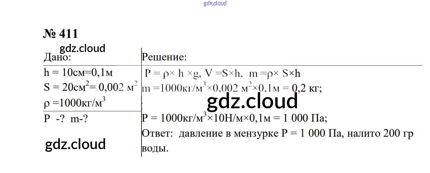 Ответ на задание 411 Сборник задач Физика за 7, 8, 9 (седьмой, восьмой, девятый) класс Перышкин, Лонцова УМК 2016