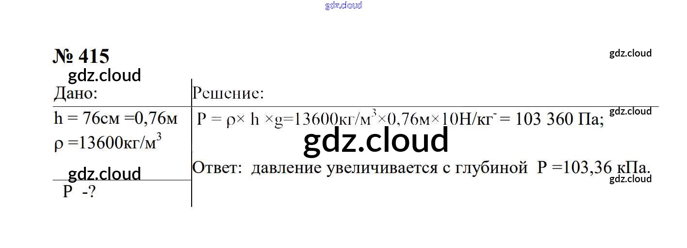 Ответ на задание 415 Сборник задач Физика за 7, 8, 9 (седьмой, восьмой, девятый) класс Перышкин, Лонцова УМК 2016