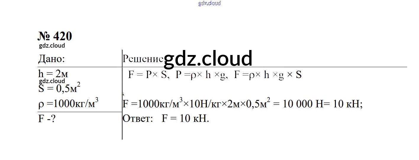 Ответ на задание 420 Сборник задач Физика за 7, 8, 9 (седьмой, восьмой, девятый) класс Перышкин, Лонцова УМК 2016