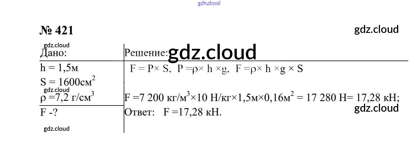 Ответ на задание 421 Сборник задач Физика за 7, 8, 9 (седьмой, восьмой, девятый) класс Перышкин, Лонцова УМК 2016