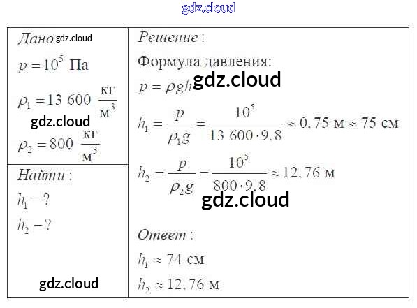 Давление твердых тел, жидкостей и газов Ответы к 7 классу по Физике 7, 8, 9 класс Сборник задач Перышкин УМК Экзамен
