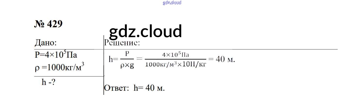 Ответ на задание 429 Сборник задач Физика за 7, 8, 9 (седьмой, восьмой, девятый) класс Перышкин, Лонцова УМК 2016