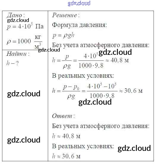 Давление твердых тел, жидкостей и газов Ответы к 7 классу по Физике 7, 8, 9 класс Сборник задач Перышкин УМК Экзамен
