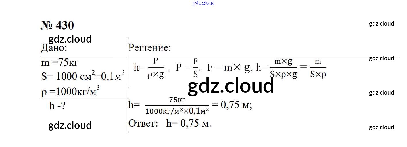 Ответ на задание 430 Сборник задач Физика за 7, 8, 9 (седьмой, восьмой, девятый) класс Перышкин, Лонцова УМК 2016