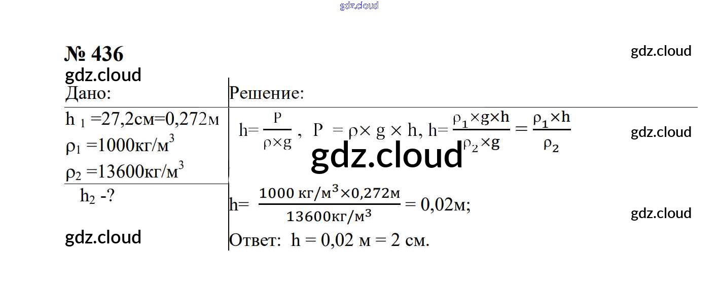 Ответ на задание 436 Сборник задач Физика за 7, 8, 9 (седьмой, восьмой, девятый) класс Перышкин, Лонцова УМК 2016