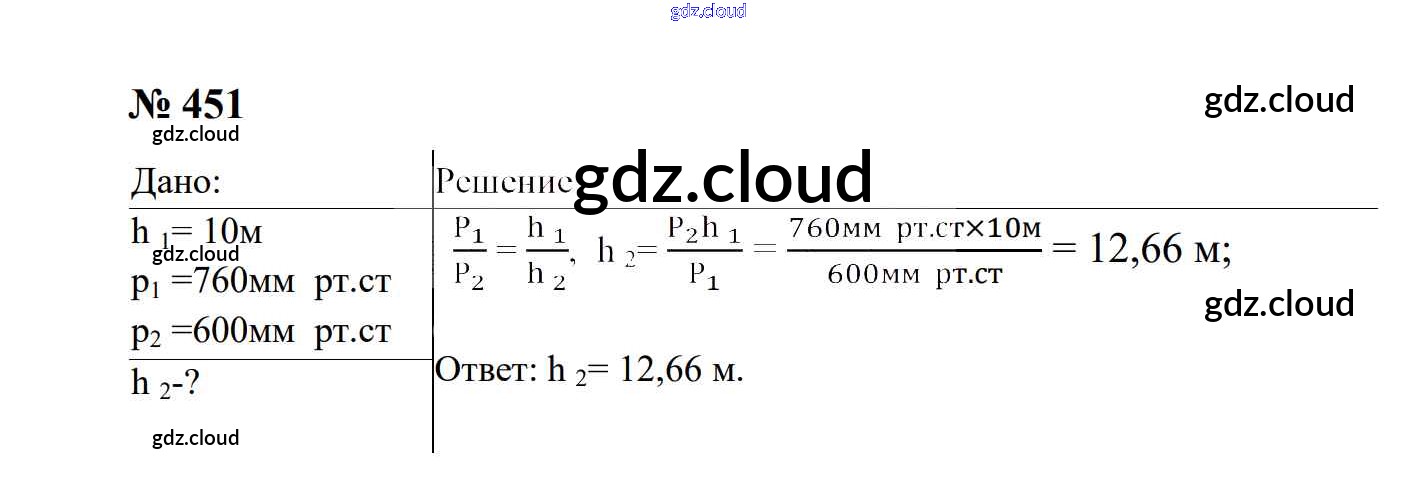 Ответ на задание 451 Сборник задач Физика за 7, 8, 9 (седьмой, восьмой, девятый) класс Перышкин, Лонцова УМК 2016