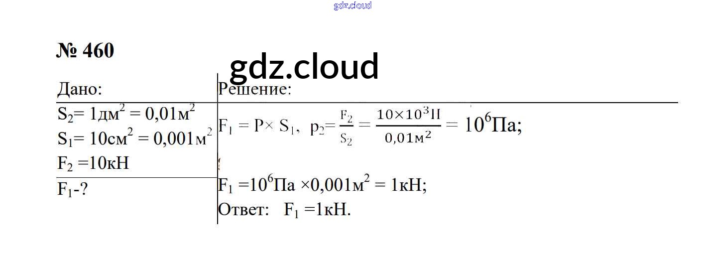 Ответ на задание 460 Сборник задач Физика за 7, 8, 9 (седьмой, восьмой, девятый) класс Перышкин, Лонцова УМК 2016