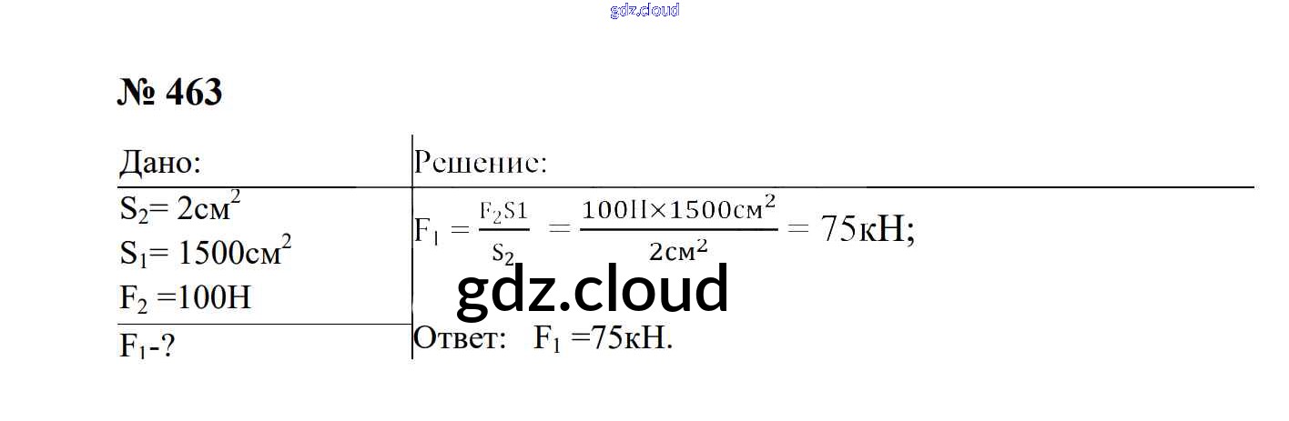 Ответ на задание 463 Сборник задач Физика за 7, 8, 9 (седьмой, восьмой, девятый) класс Перышкин, Лонцова УМК 2016