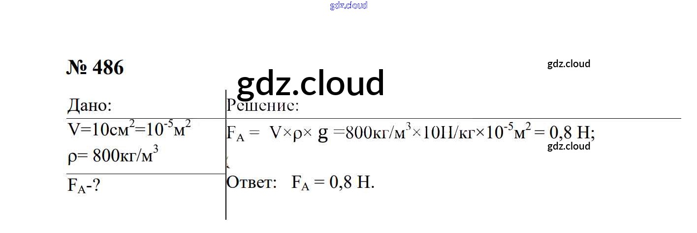 Ответ на задание 486 Сборник задач Физика за 7, 8, 9 (седьмой, восьмой, девятый) класс Перышкин, Лонцова УМК 2016