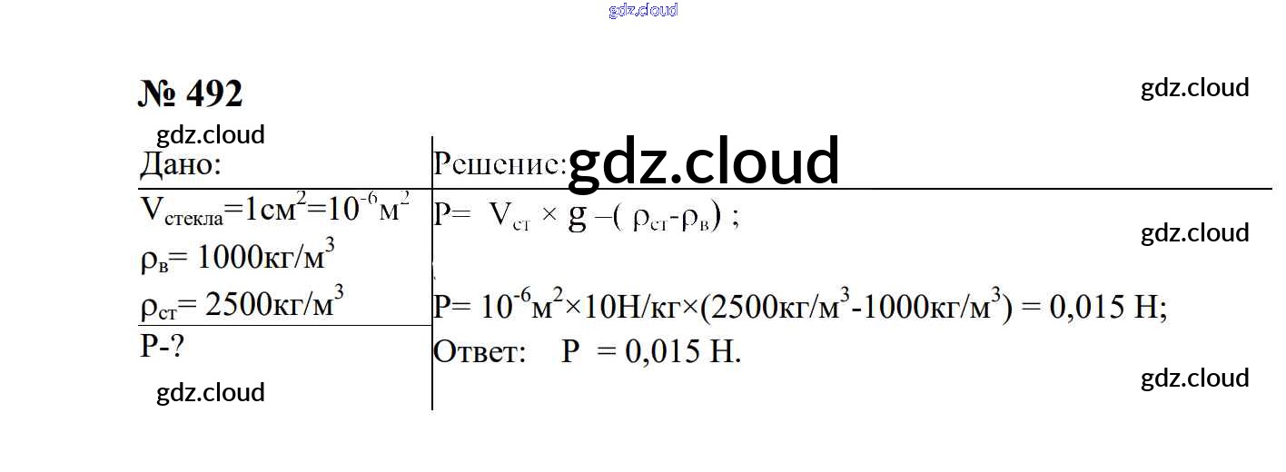 Ответ на задание 492 Сборник задач Физика за 7, 8, 9 (седьмой, восьмой, девятый) класс Перышкин, Лонцова УМК 2016