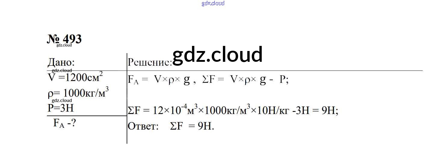 Ответ на задание 493 Сборник задач Физика за 7, 8, 9 (седьмой, восьмой, девятый) класс Перышкин, Лонцова УМК 2016