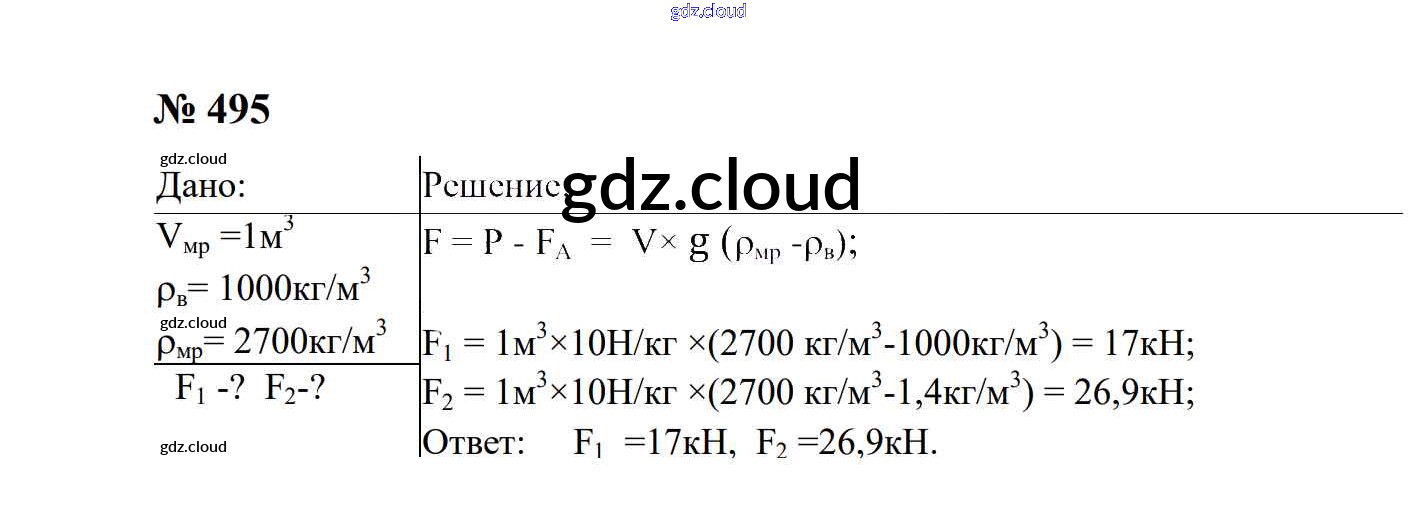 Ответ на задание 495 Сборник задач Физика за 7, 8, 9 (седьмой, восьмой, девятый) класс Перышкин, Лонцова УМК 2016