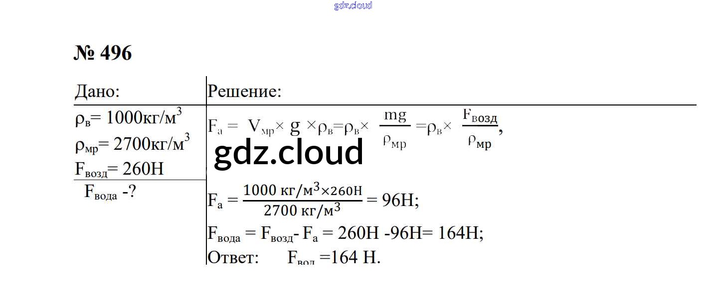 Ответ на задание 496 Сборник задач Физика за 7, 8, 9 (седьмой, восьмой, девятый) класс Перышкин, Лонцова УМК 2016