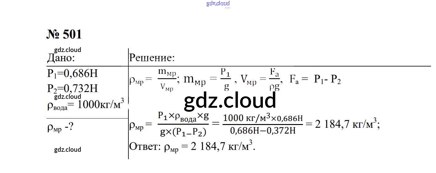 Ответ на задание 501 Сборник задач Физика за 7, 8, 9 (седьмой, восьмой, девятый) класс Перышкин, Лонцова УМК 2016