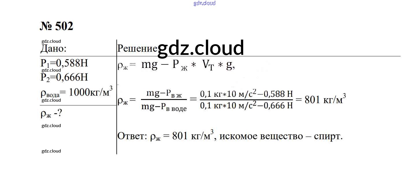 Ответ на задание 502 Сборник задач Физика за 7, 8, 9 (седьмой, восьмой, девятый) класс Перышкин, Лонцова УМК 2016