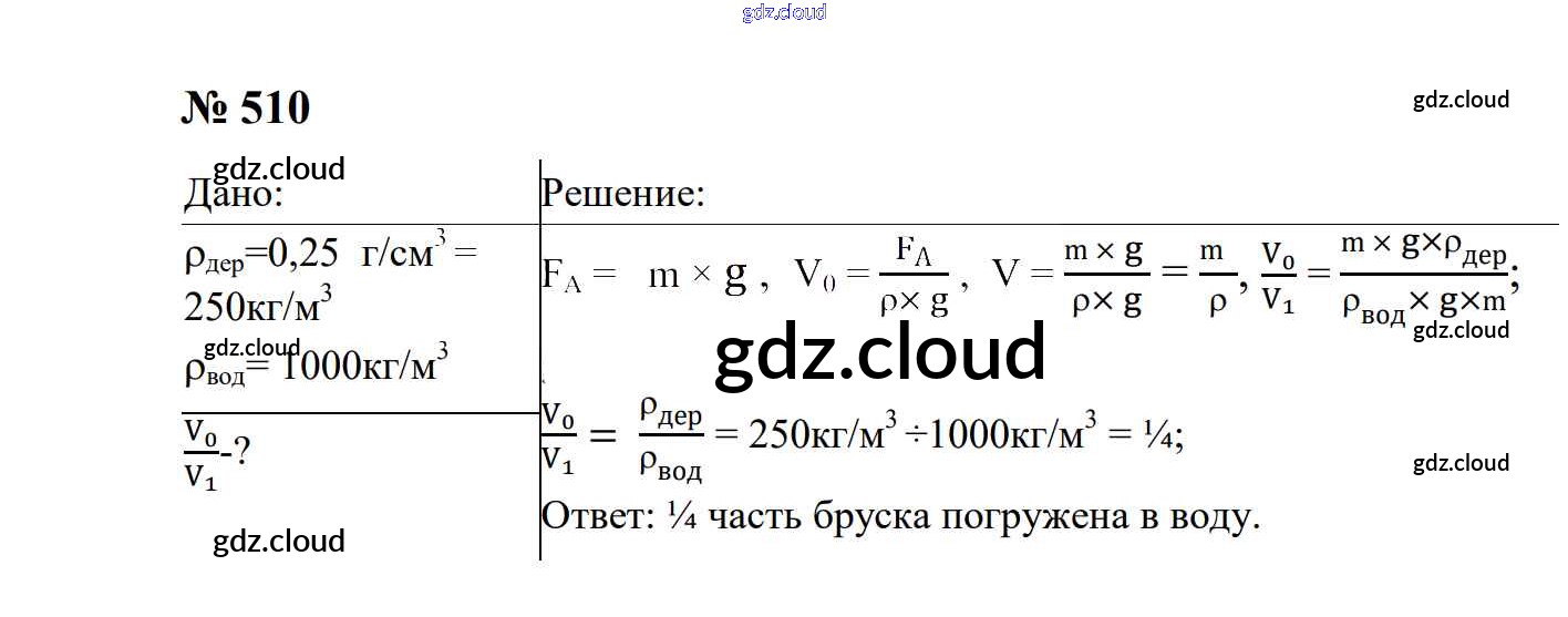 Ответ на задание 510 Сборник задач Физика за 7, 8, 9 (седьмой, восьмой, девятый) класс Перышкин, Лонцова УМК 2016