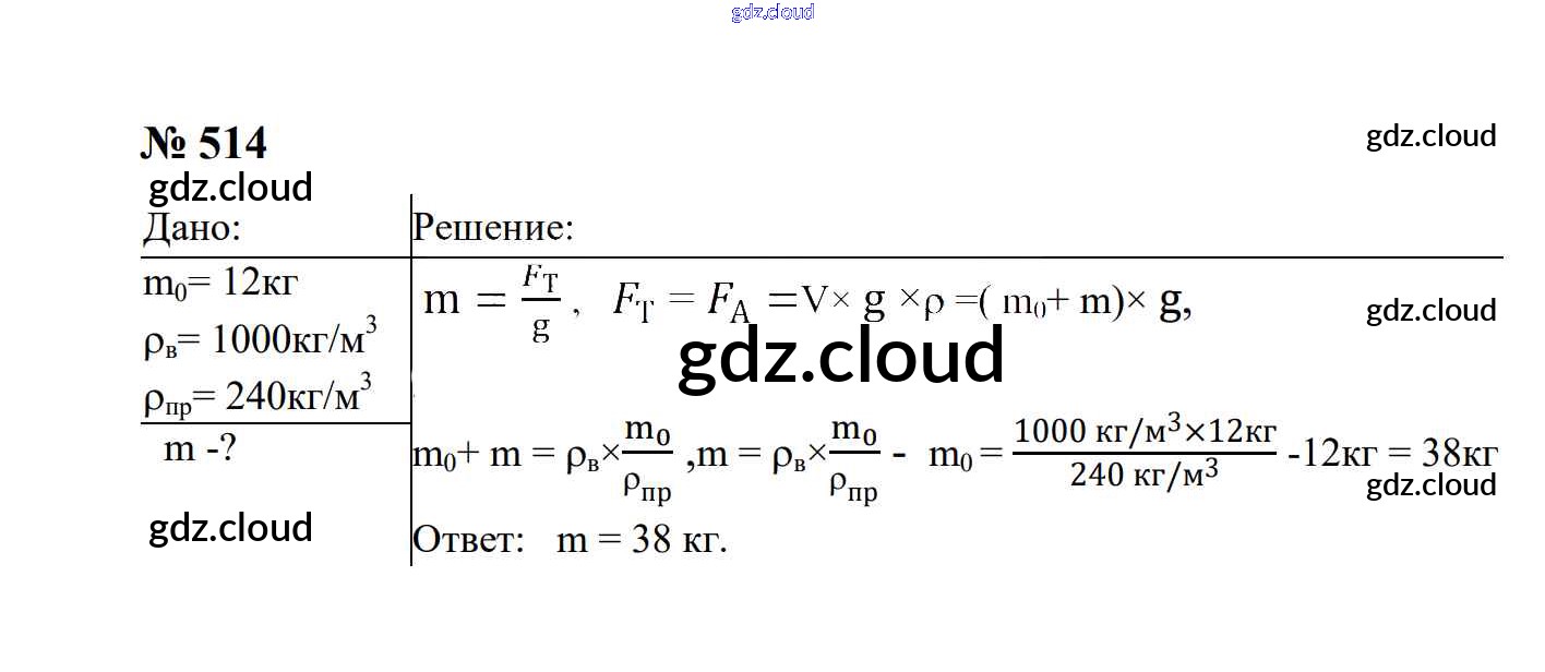 Ответ на задание 514 Сборник задач Физика за 7, 8, 9 (седьмой, восьмой, девятый) класс Перышкин, Лонцова УМК 2016