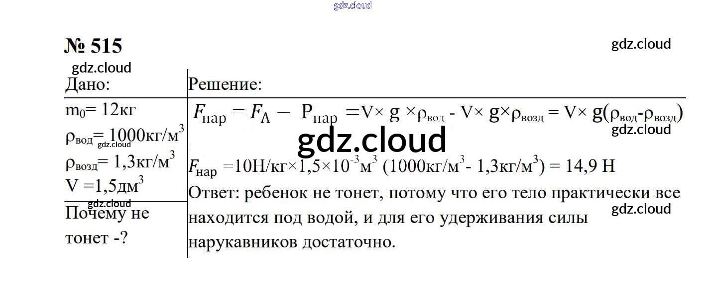 Ответ на задание 515 Сборник задач Физика за 7, 8, 9 (седьмой, восьмой, девятый) класс Перышкин, Лонцова УМК 2016