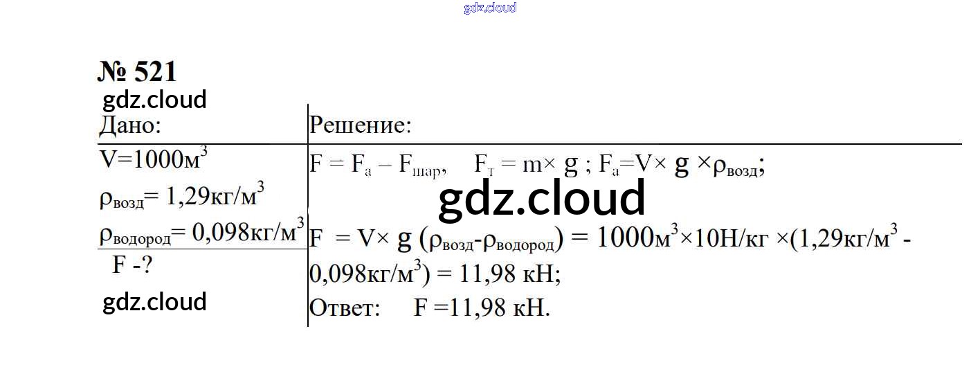 Ответ на задание 521 Сборник задач Физика за 7, 8, 9 (седьмой, восьмой, девятый) класс Перышкин, Лонцова УМК 2016