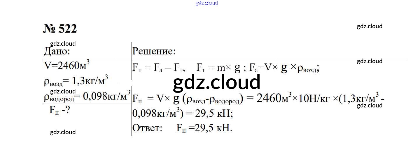 Ответ на задание 522 Сборник задач Физика за 7, 8, 9 (седьмой, восьмой, девятый) класс Перышкин, Лонцова УМК 2016