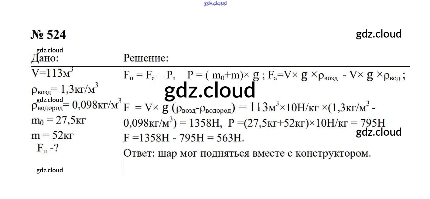 Ответ на задание 524 Сборник задач Физика за 7, 8, 9 (седьмой, восьмой, девятый) класс Перышкин, Лонцова УМК 2016