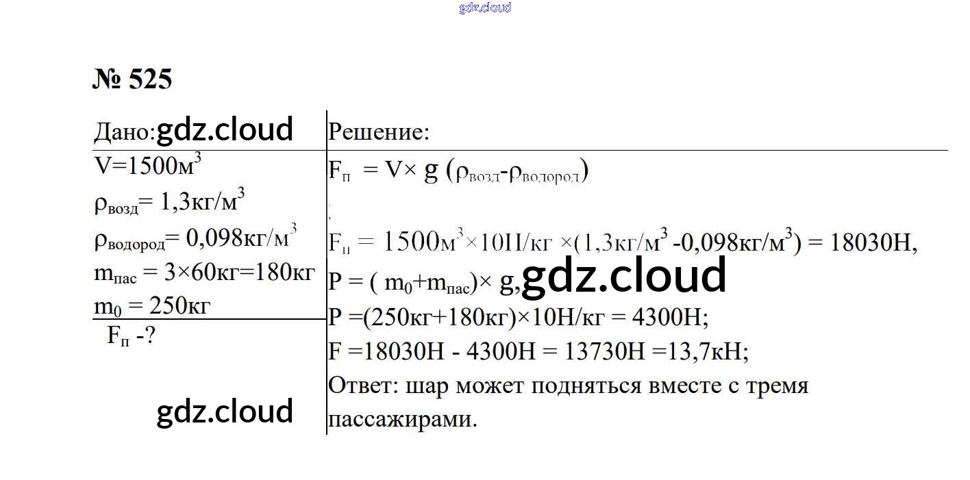 Ответ на задание 525 Сборник задач Физика за 7, 8, 9 (седьмой, восьмой, девятый) класс Перышкин, Лонцова УМК 2016