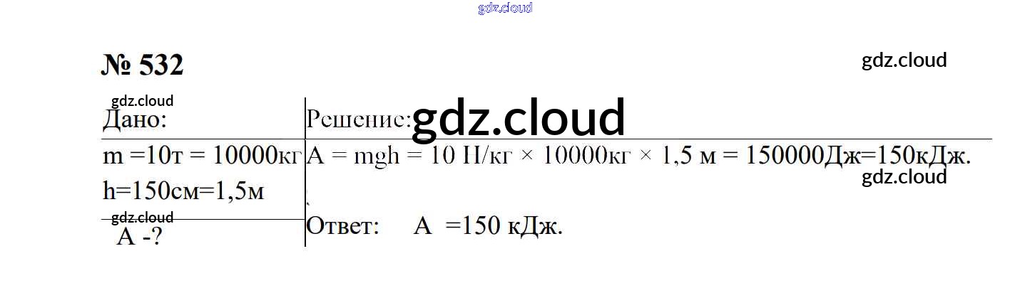 Ответ на задание 532 Сборник задач Физика за 7, 8, 9 (седьмой, восьмой, девятый) класс Перышкин, Лонцова УМК 2016